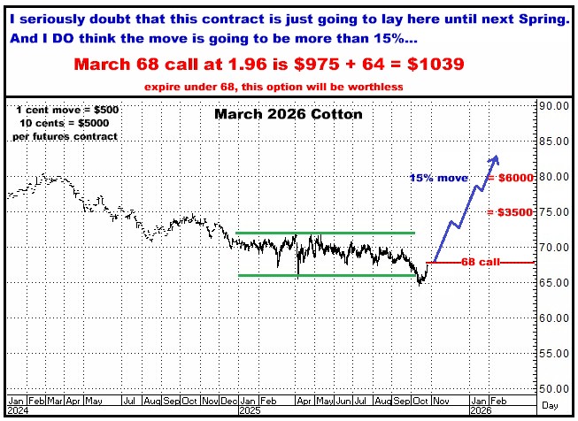 I THINK COTTON IS POISED TO ERUPT ON THE UPSIDE AND REGARD IT AS A