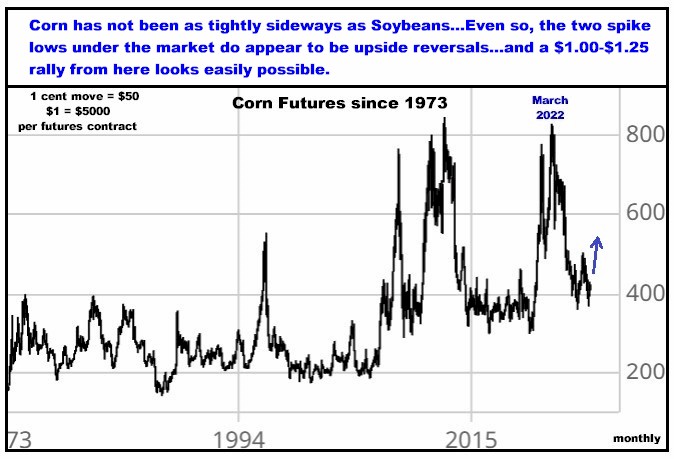 downside collapse in Corn and Soybeans, with my expectation being that the