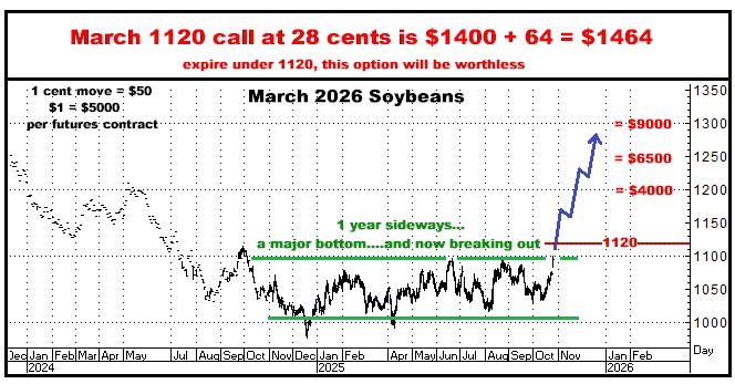 recommendation is to buy “units” of 1 call each in Corn, Cotton, Soybeans